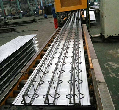 3、鋼筋桁架樓承板實現(xiàn)了機械標準化生產(chǎn),有利于鋼筋排列位置準確,間距均勻,提高了樓板的施工質(zhì)量。并且減少現(xiàn)場鋼筋綁扎工作量,很大程度的縮短工期,節(jié)省成本。