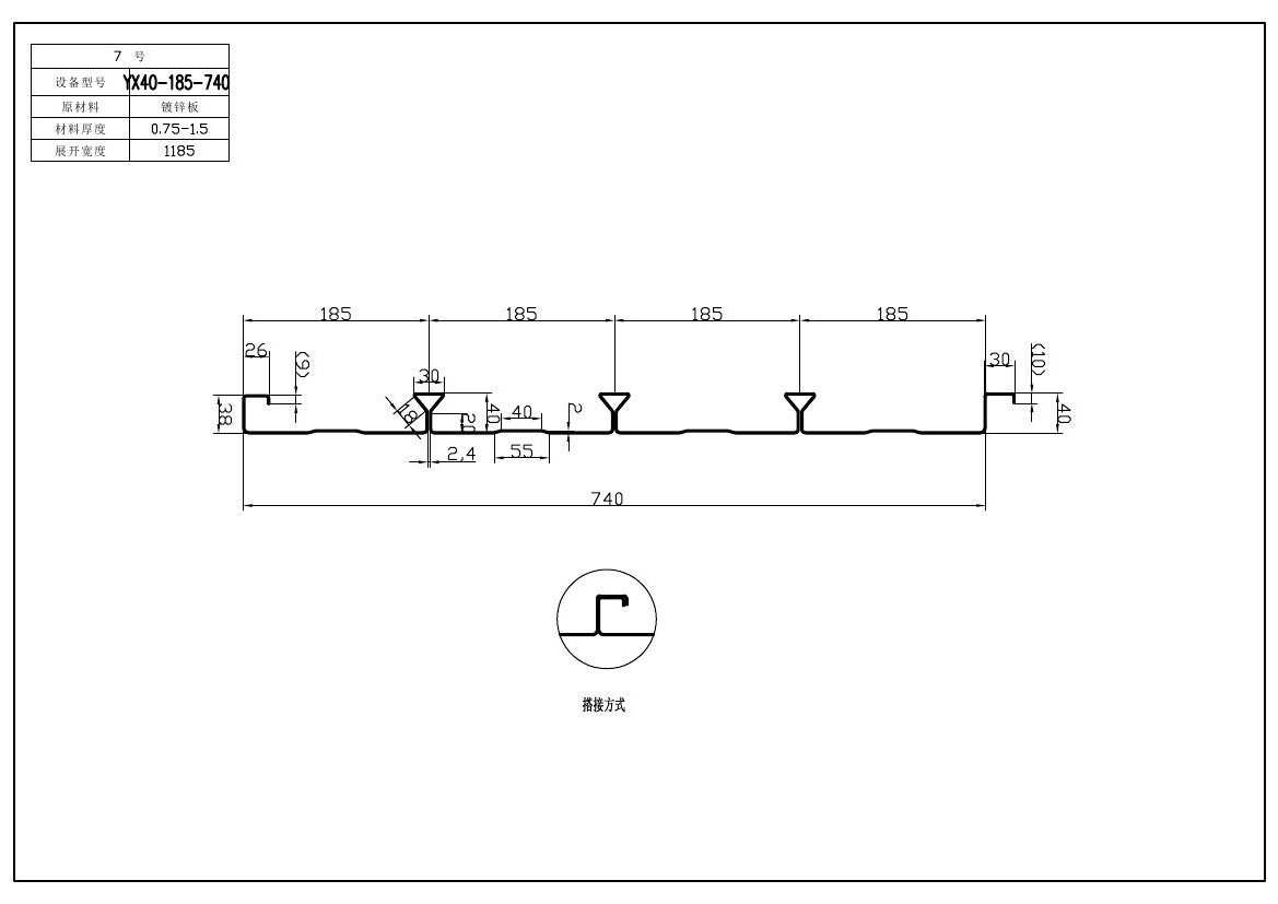 YX40-185-740閉口樓承板,也叫壓型鋼板、鋼承板、鋼樓承板,是采用鍍鋅鋼板經(jīng)輥壓冷彎成型,其截面成V型、U型、梯形或類似這幾種形狀的波形,主要用作性模板,也可被選為其他用途。