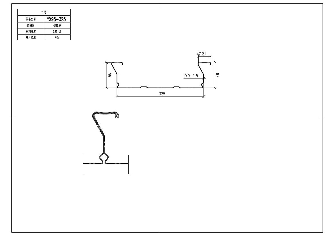 YX95-325閉口樓承板,也叫壓型鋼板、鋼承板、鋼樓承板,是采用鍍鋅鋼板經輥壓冷彎成型,其截面成V型、U型、梯形或類似這幾種形狀的波形,主要用作性模板,也可被選為其他用途。